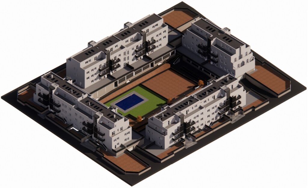 • 93 viviendas de VPO de régimen concertado y precio tasado de 1, 2, 3 y 4 dormitorios. 1/2 baños. Suelo radiante / refrescante (aerotermia).
